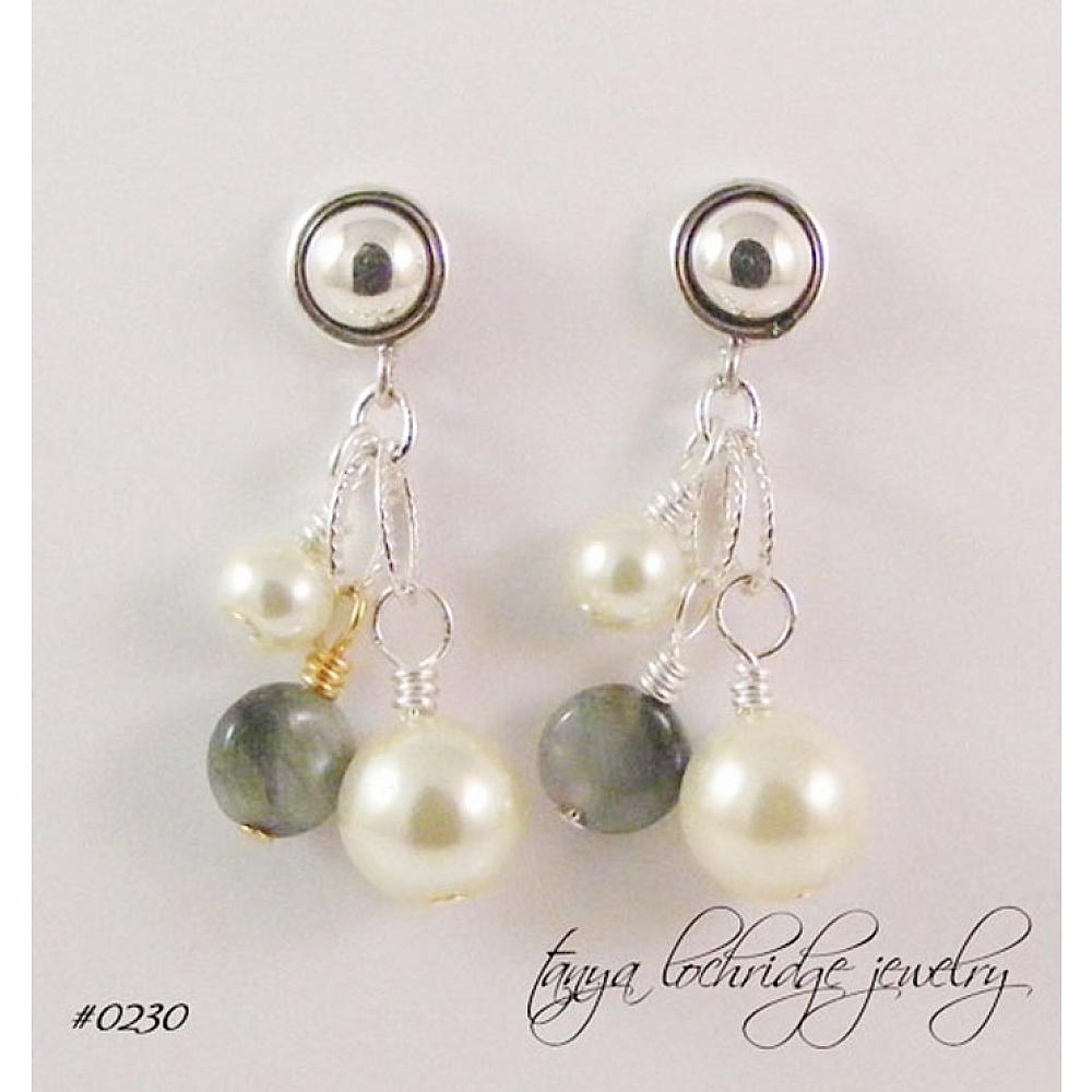 > Eagle Eye Agate Gemstone & Pearl Drop Earrings
