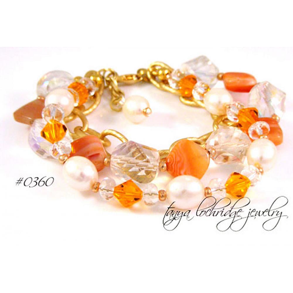 > Botswana Agate, Pearl & Swarovski Crystal Bracelet #0360