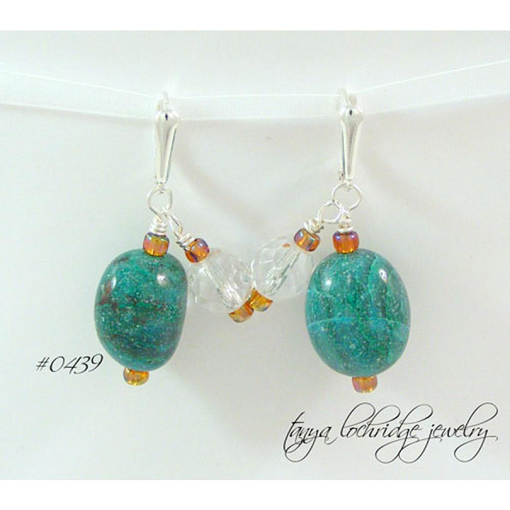 Oh how I love chrysocolla – in my book, it’s prettier than turquoise. Crazy…maybe but it is what I think. These gemstone beads are just about an inch in length – significant but not too much. I have no idea why it took me so long to actually make some earrings with these gorgeous stones – you know how sometimes you just don’t see something? Well, that is what happened. I think you will love these. Beautiful sterling silver leverbacks with a high-polished shield are the perfect partner. Smaller Czech fire-polished faceted beads glisten with the chrysocolla and are the perfect partner.