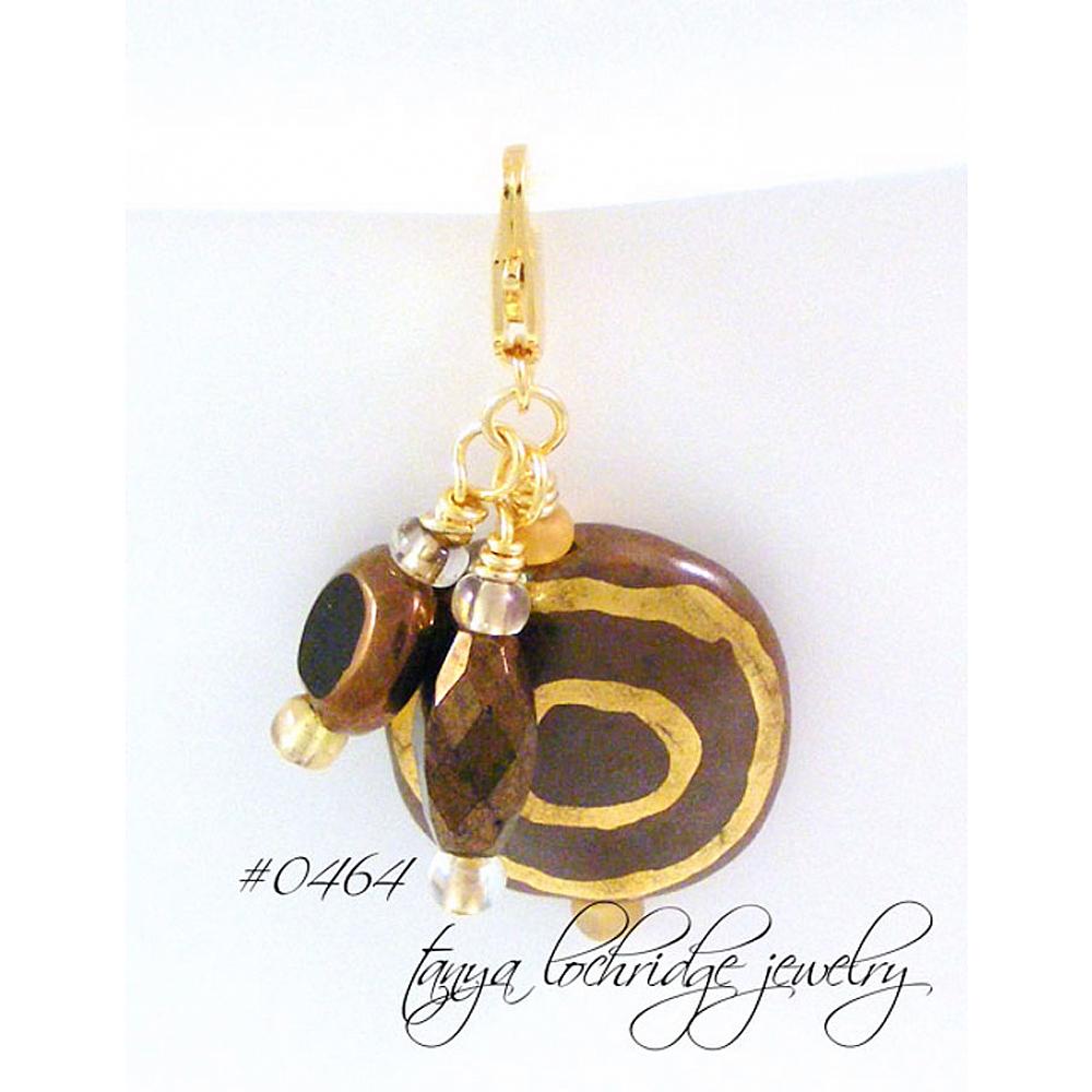 > Kazuri Bead Matte Coco & Gold Charm
