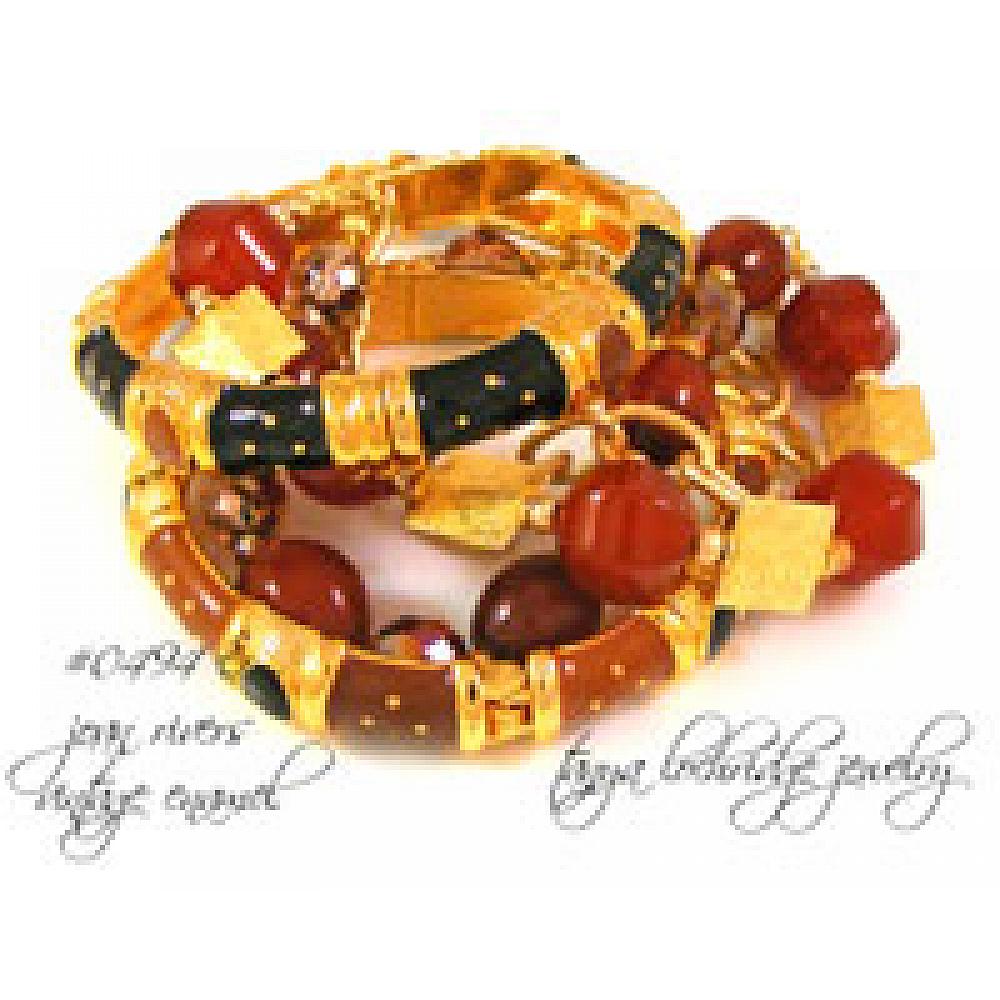 I can't help it -- I am always influenced by Miriam Haskell - just love all the bits and bobs her group used to make a piece of jewelry. This bracelet works by itself; but you know me, I have to mix it up with others from my collection. So, here are a few examples of the looks I styled. The bracelet closes with a top-quality gold vermeil double toggle clasp so you get just the right fit – 7 ¼” to about 8 ¼”. Since the bracelet is weighty enough, the toggle clasp is secure. It’s another one of those engineering deals – there has to be enough weight to the strands for the toggle to work properly but not too much as to make it uncomfortable.