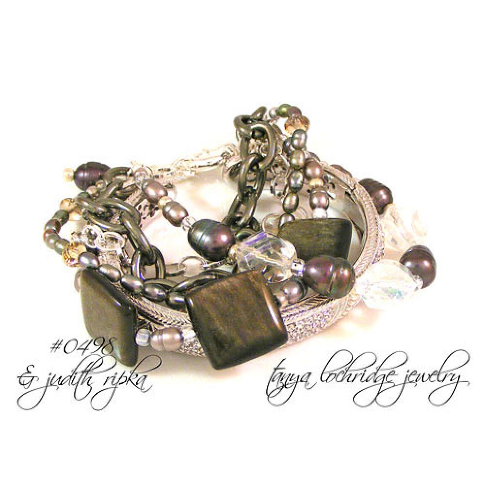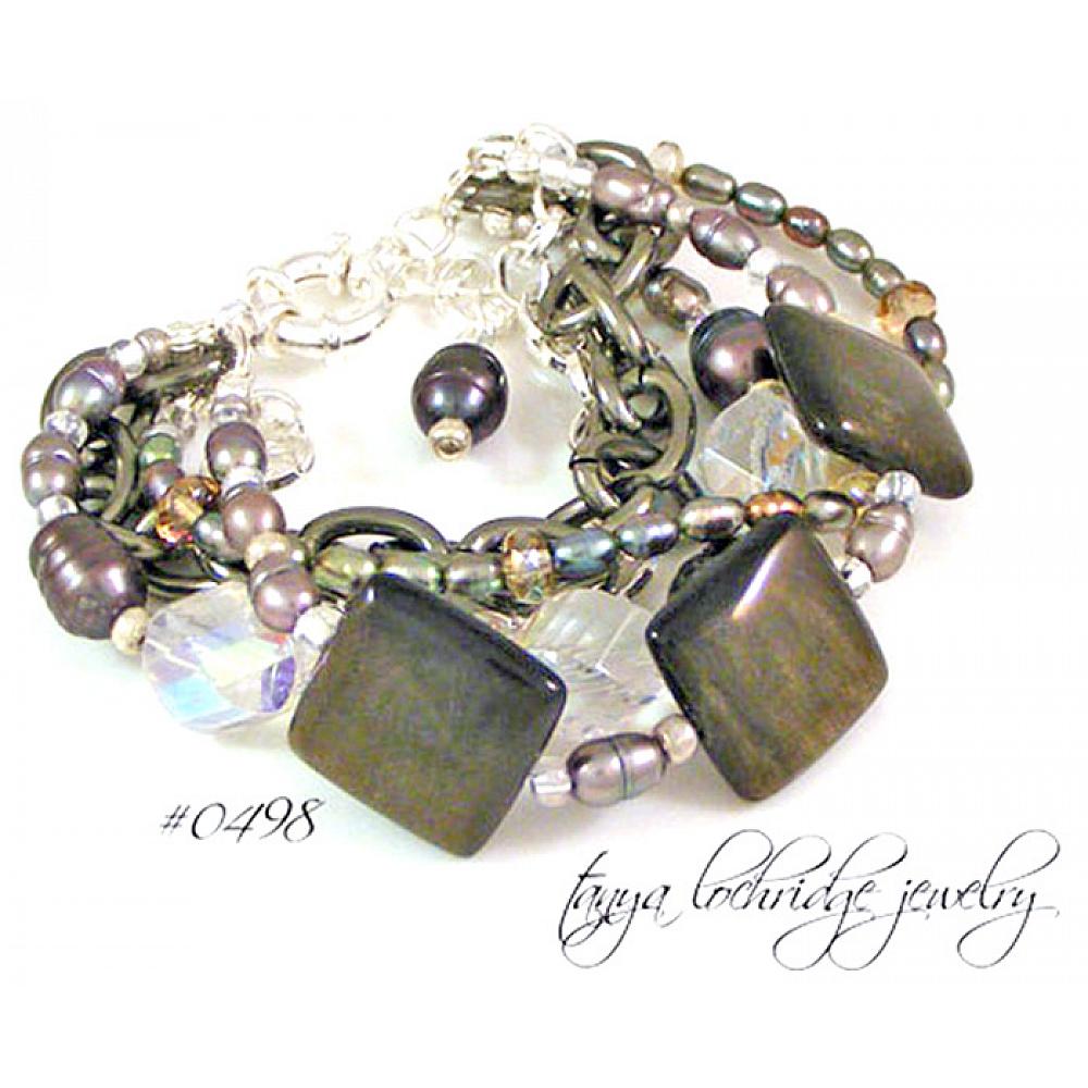 > Rainbow Obsidian, Freshwater Pearl & Czech Glass 5-Strand Bracelet #0498