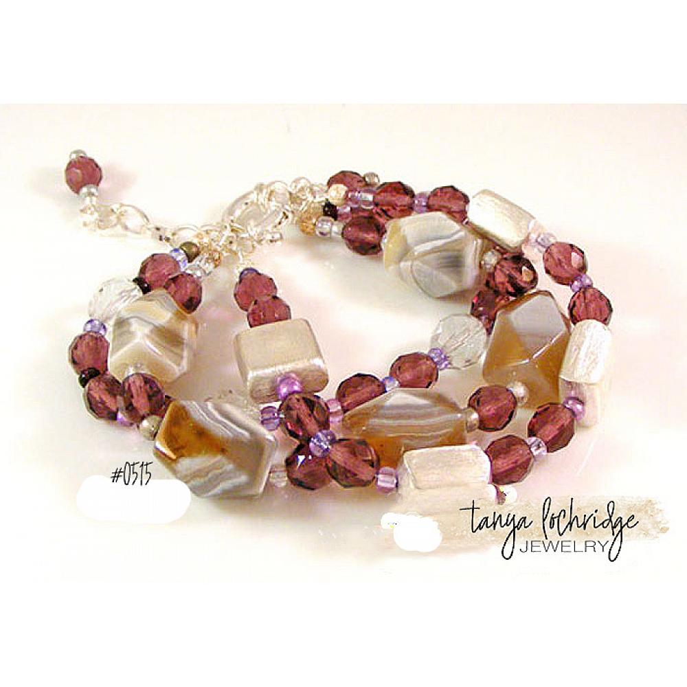 > Purple Banded Agate & Czech Glass Three-Strand Bracelet #0515