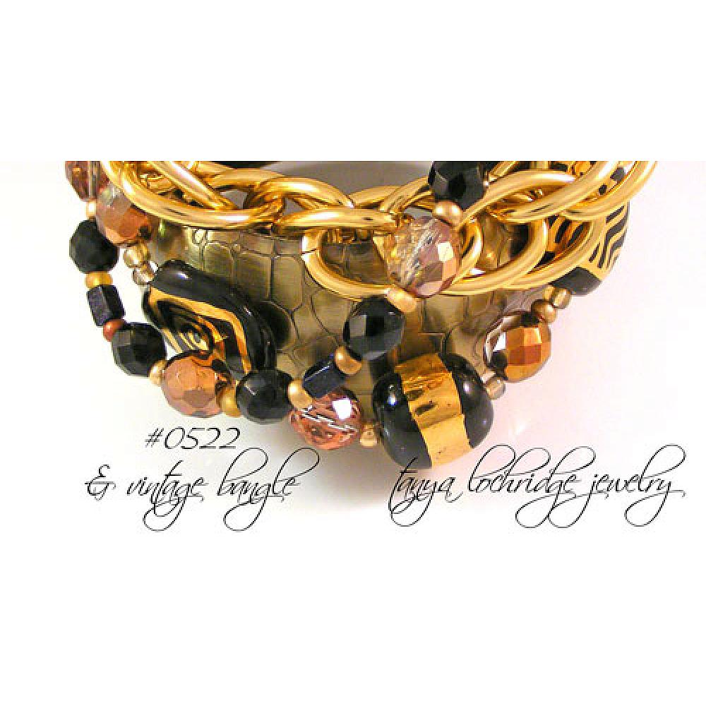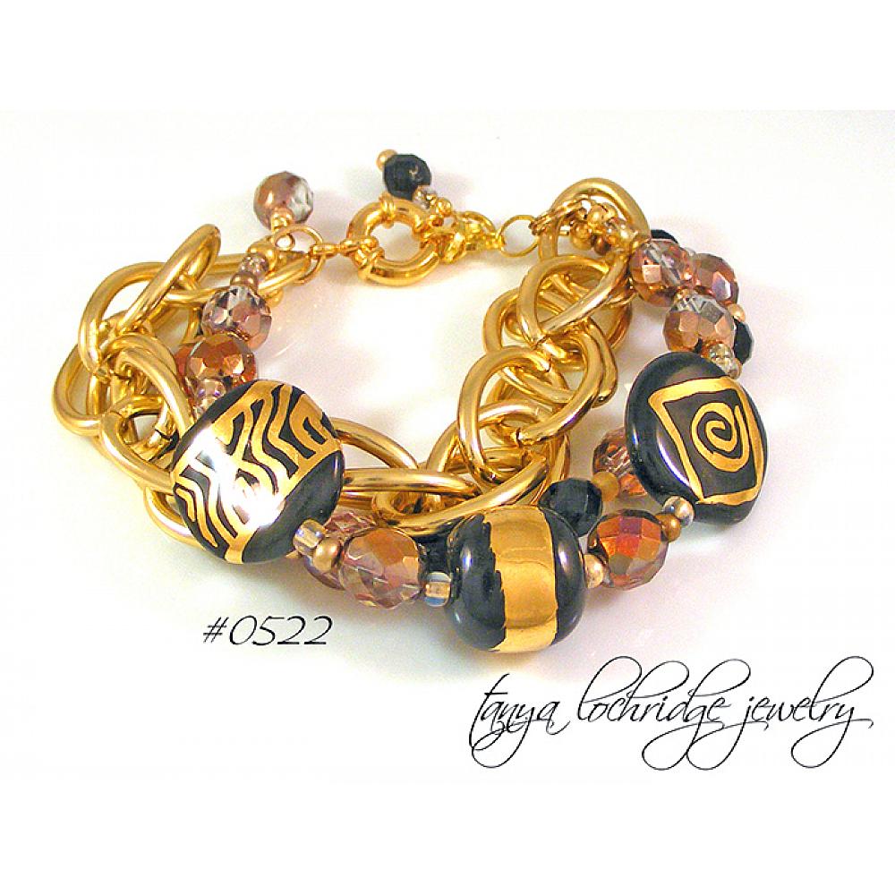 > Kazuri Bead Three's the Charm 2 Black & Gold Bracelet #0522