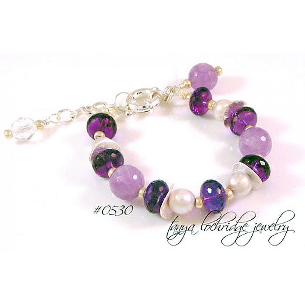 > Amethyst & Pearl Silver Potato Chip Bracelet #530