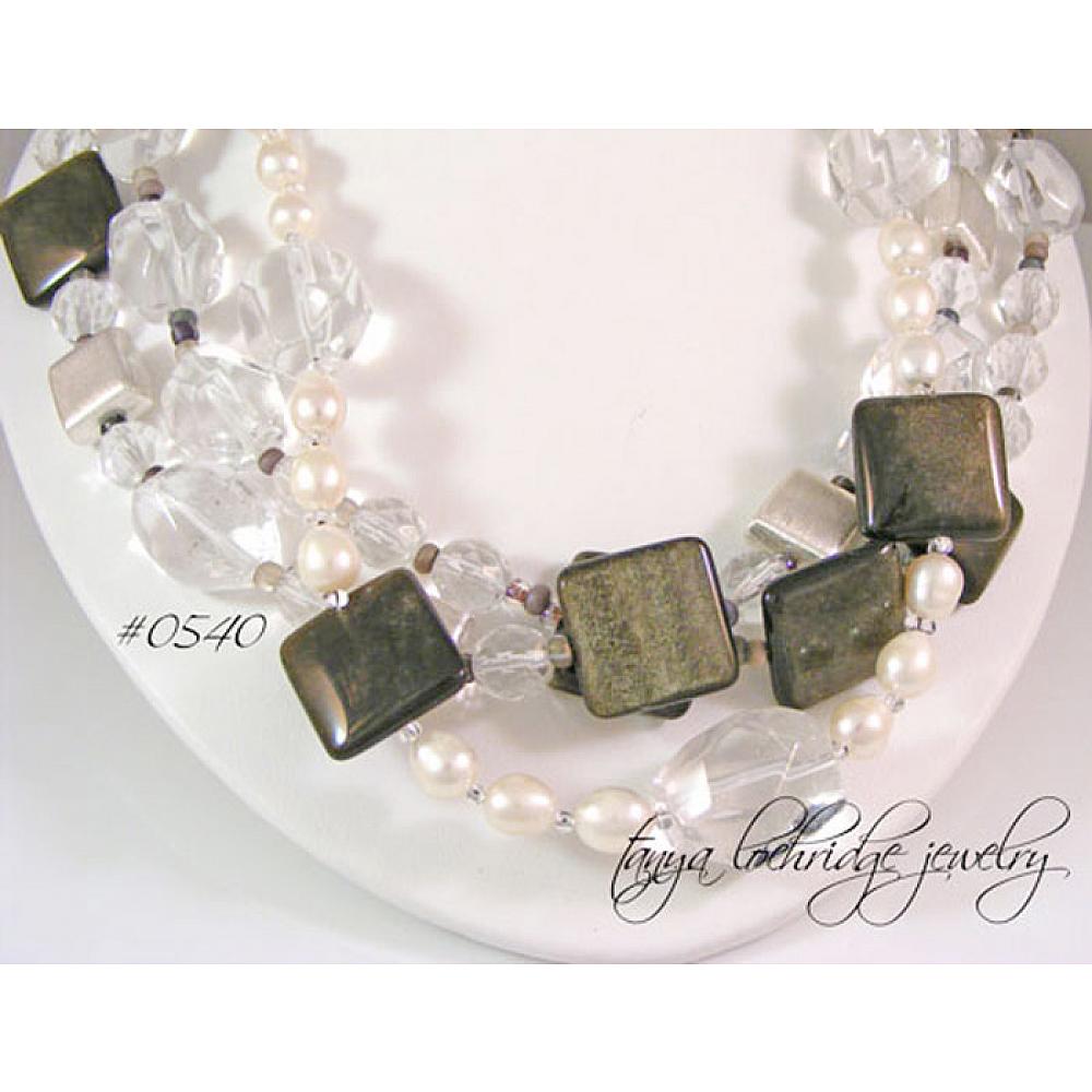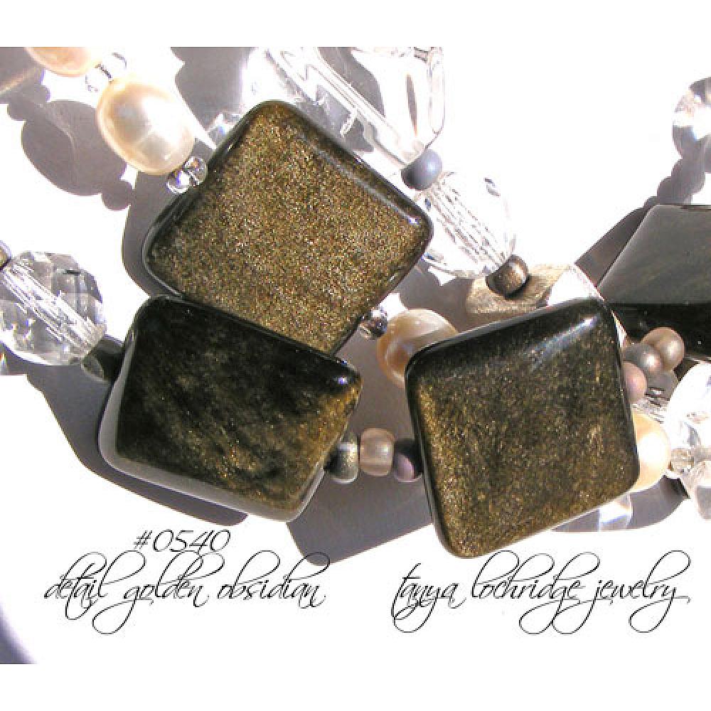 > Golden Obsidian, Crystal Quartz Gemstone & Freshwater Pearl Necklace