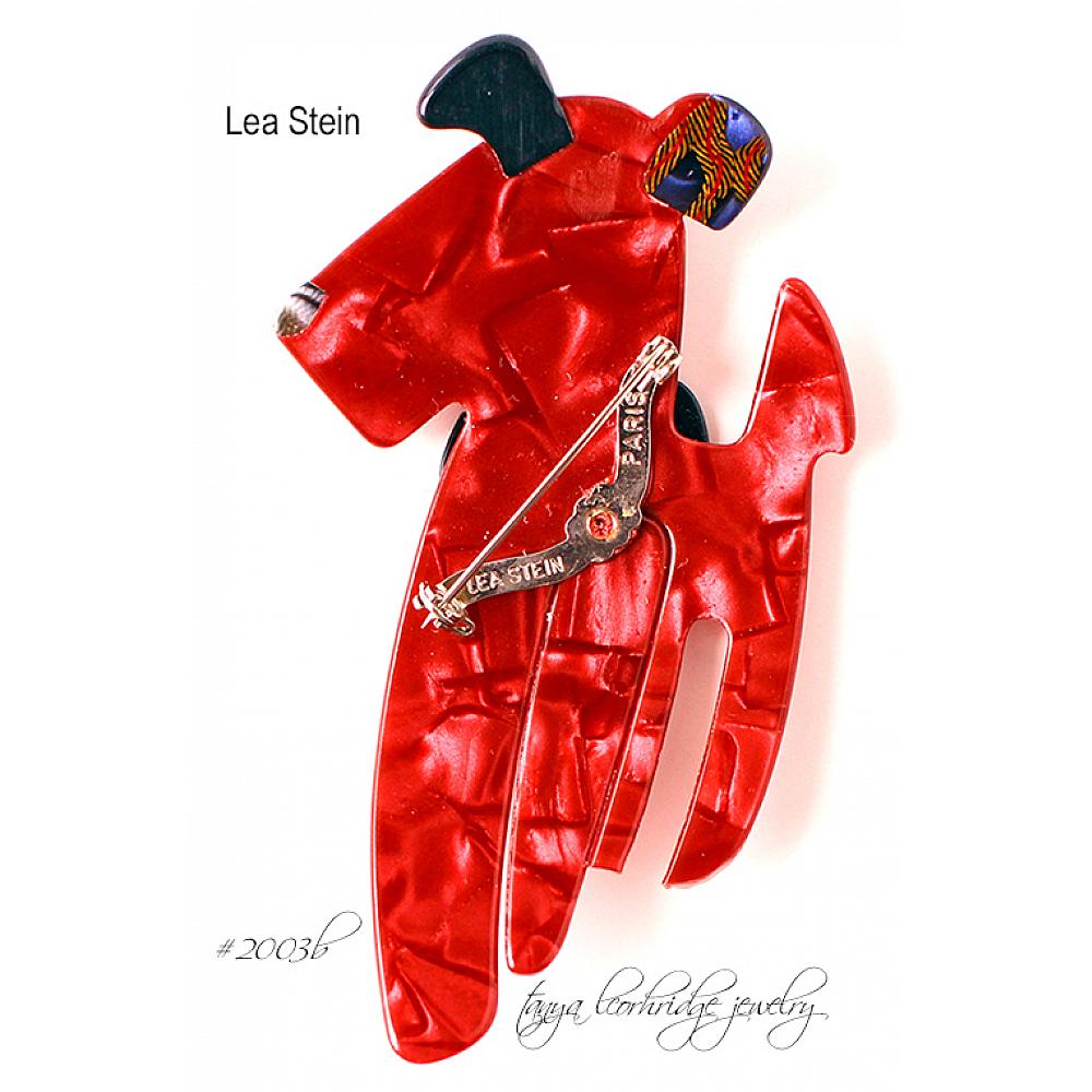 Signed “LEA STEIN PARIS” on the original v-shaped pinback.
