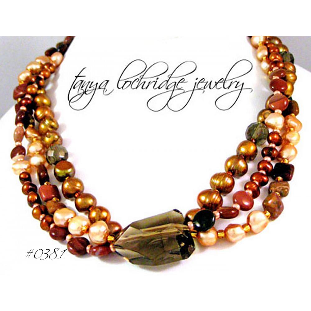 > Smoky Quartz, Imperial Jasper, Pearl Gemstone Necklace