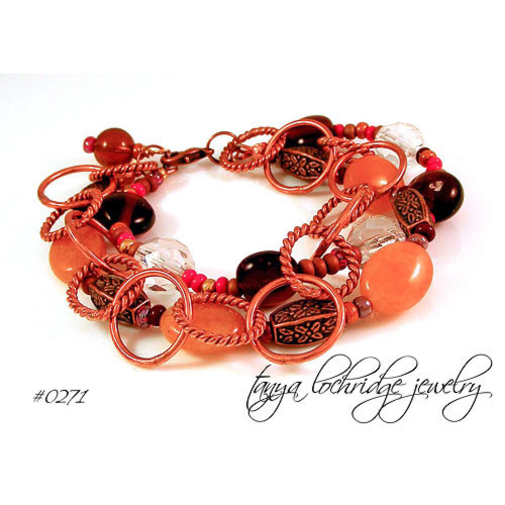 I don't know about the healing properties of copper; but I do know that when I look at this bracelet I feel happy! Not sure if it is the natural red aventurine oval beads or the beautifully detailed copper beads; I just know that mixed with the textured copper round link chain it all comes together and makes a happy statement. Gemstones measure 5/8" by 1/2" while the copper beads are 1/2" long and have significant substance to them. Closes with a lobster clasp and measures 8" in length, but fits like a 7 1/2". Believe it or not, this bracelet can be considered a neutral and will go with most colors in your wardrobe. From the Tanya Lochridge Jewelry Trunk Show Collection.